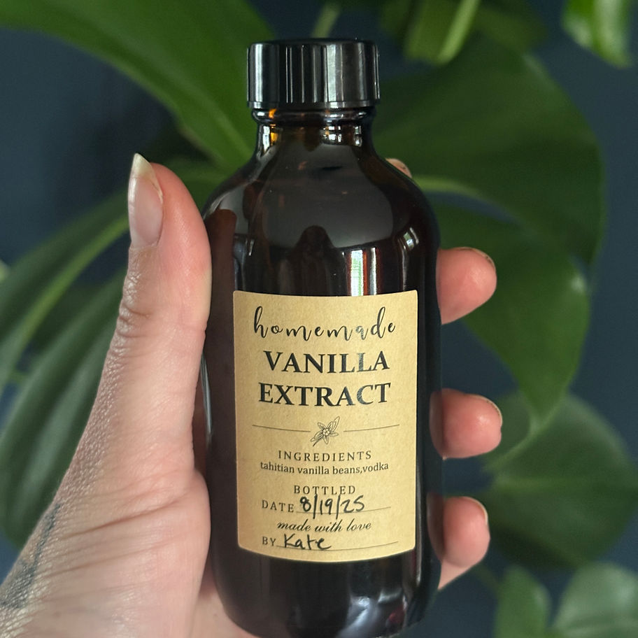 Our homemade organic vanilla extract (4oz) is now available! We’ve used this for years in our own home, given them as gifts, and sold at market. Now you can enjoy too!